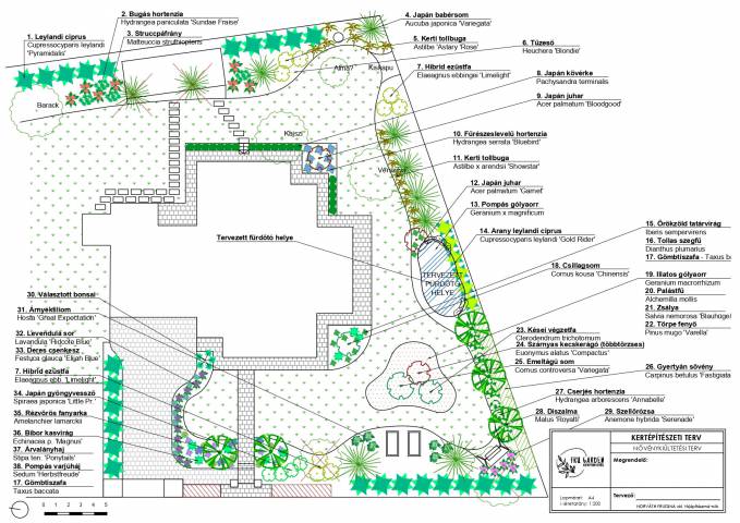 • Már az alapcsomag is tartalmazza azokat az információkat és paramétereket (szöveges és képes bemutatás, méretarányos alaprajz, növényjavaslat és növénylista, telepítési javaslat...), amelyek mentén nem csak a kertépítők, hanem a hobbykertészek is könnyedén nekivághatnak álmaik kertjének megvalósításához.